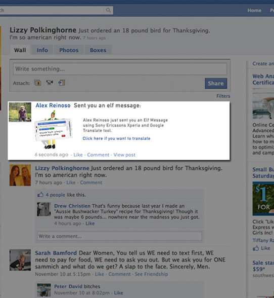 A Facebook tab application created for the holidays giving the user the chance to send friends a message in Elf language.