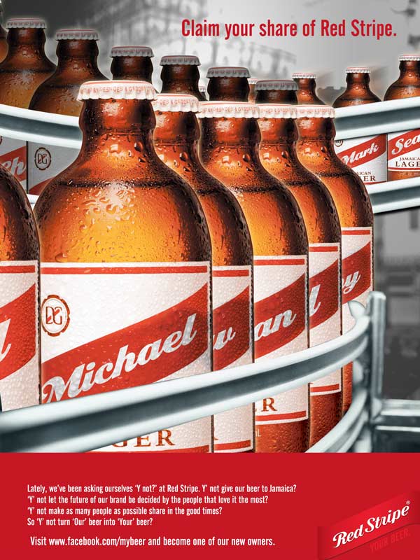 What if you had the chance to really own your own beer label? Better yet own the brewery? Move over Mr. Beer ambassador, the Island people who love this product can now make it theirs. Via a 360˚ campaign the user would register virally and would then receive owner initiatives to spend company profits and would be able to share the wealth socially. So buy your stack today!