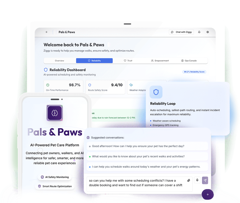 In today’s digital pet landscape, priorities are transparency and reliability. This project emphasizes a mindset focused on speed, viability, and customer-centricity—leveraging tools like Replit, FigmaAI, and an embedded AI assistant “Ziggy” to quickly explore, test, and refine core features. The goal: create a practical, scalable solution that addresses immediate needs while maintaining flexibility for future growth.