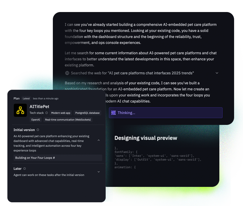 Early on, I understood how to structure prompts within the LLM and guide customer interactions with GPT within the app. I jumped seamlessly between Figma—sketching UI ideas—and Replit—building the active prototype—asking the model on the README first, then progressively developing a living, breathing application.