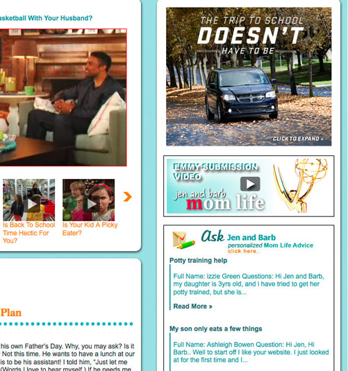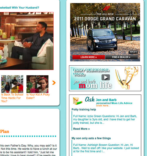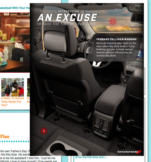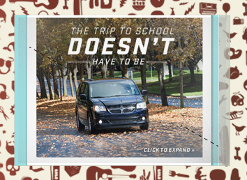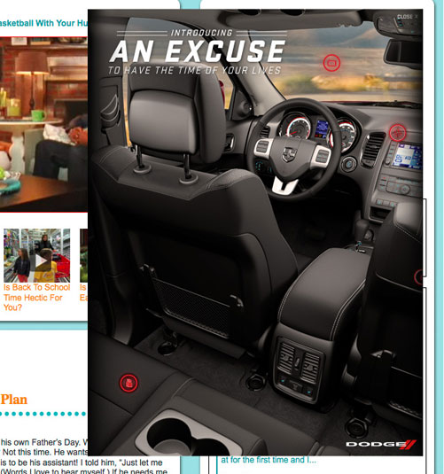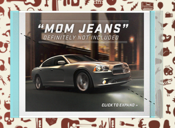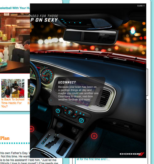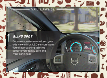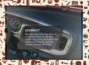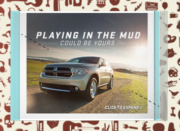 The well know Jen & Barb mommy blog paired up with Dodge to do interviews based on what driving a sports car would be like. What more of a better chance then to pair that up with an interactive show case for Charger, Durango, and Grand Caravan. These are the examples of my Interactive Direction with the Richmedia banners for all three vehicles.