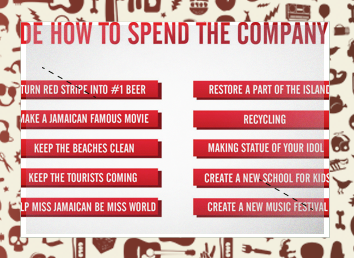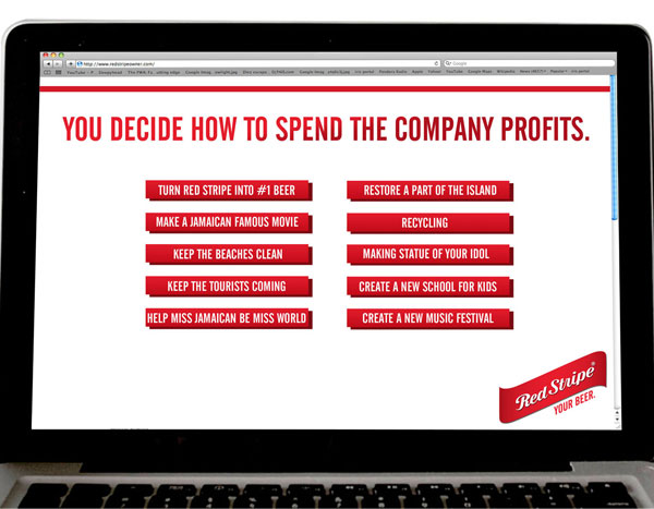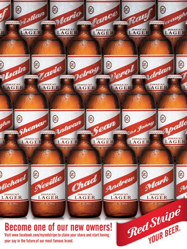 What if you had the chance to really own your own beer label? Better yet own the brewery? Move over Mr. Beer ambassador, the Island people who love this product can now make it theirs. Via a 360˚ campaign the user would register virally and would then receive owner initiatives to spend company profits and would be able to share the wealth socially. So buy your stack today!